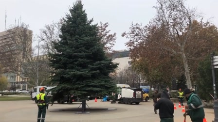 A kecskeméti karácsonyfát hétfőn délután díszítették fel a Városüzemeltetési Kft. munkatársai a Nagytemplom mögötti kis téren.