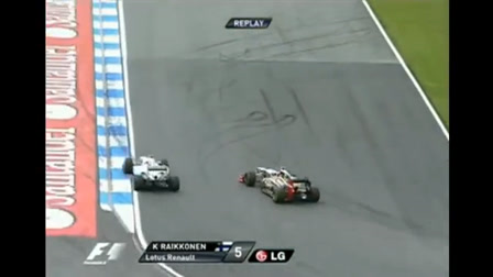 A 2006-os Brazil Nagydíjon, Schumacher utolsó versenyén Räikkönen keményen védekezik a Senna S-ben, de hiába.