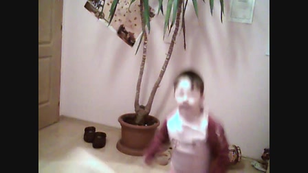 Csongor fiam az ujjával üldözi a bodobácsot.