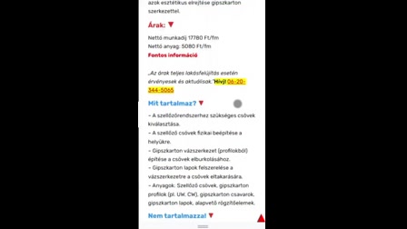 Árak (2025)MunkafázisNettó munkadíjNettó anyagköltségElszívó csövek beépítése gipszkarton borítással17.780 Ft/fm5.080 Ft/fm