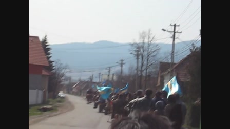 2009. ápr. 12., Húsvétvasárnap: Érkezik a lovas határkerülők fogadására kivonult gyalogos keresztalja.