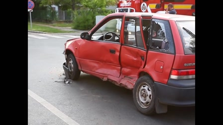 A helyi serif azt gondolta, gond nélkül átvághat szirénázva a Transformers forgatásának területén. Nem jött be, összeütközött az Űrdongót alakító sárga Chevrolet Camaróval.