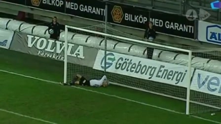 A svéd másodosztályú Värnamo kapusa, Björn Akesson mentett pontot csapata számára a Varberg elleni meccsen.