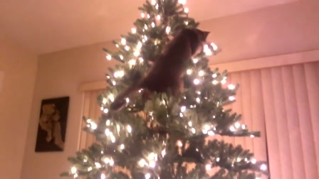 Cica játszik a karácsonyfával